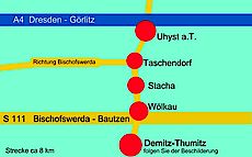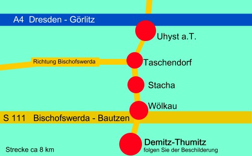 Verlassen Sie die Autobahn A4 zwischen Dresden und Görlitz an der Abfahrt Uhyst a.T.